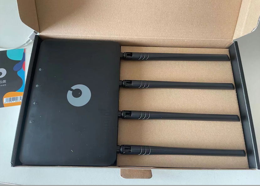 包装盒挺大, 开盒后就一个4根线的路由器和 12v-1A的 DC电源适配器.