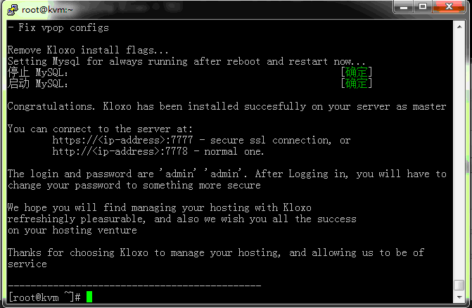 然后在浏览器里面输入http://服务器IP:7778进入Kloxo登录页面使用帐号admin和密码admin就完成了