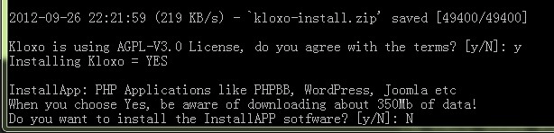 第一个【Kloxo is using AGPL-V3.0 License, do you agree with the terms?(Kloxo使用AGPL-V3.0协议你是否同意?)】 选择Y继续,选择N退出结束。